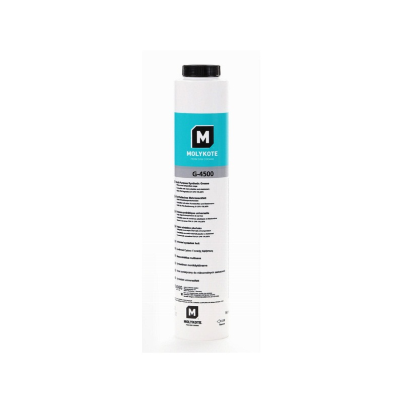 Синтетическая (ПАО) морозо- и термостойкая пластичная смазка Molykote G-4500 с пищевым допуском для долговременного смазывания высоконагруженных и высокоскоростных узлов.