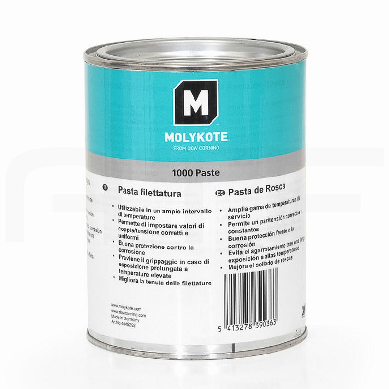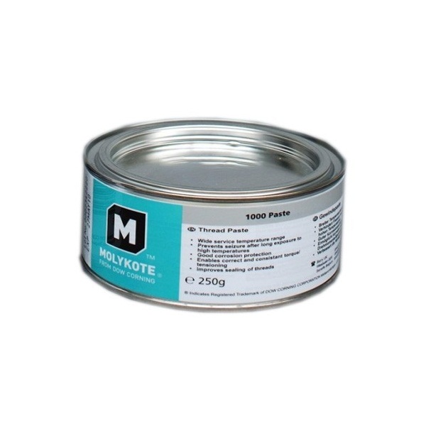 Резьбовая паста Molykote 1000 на основе твёрдых смазок, мелкодисперсного металлического порошка и минерального масла предназначена для резьбовых соединений, работающих в условиях высоких температур и/или коррозионно-активных сред.