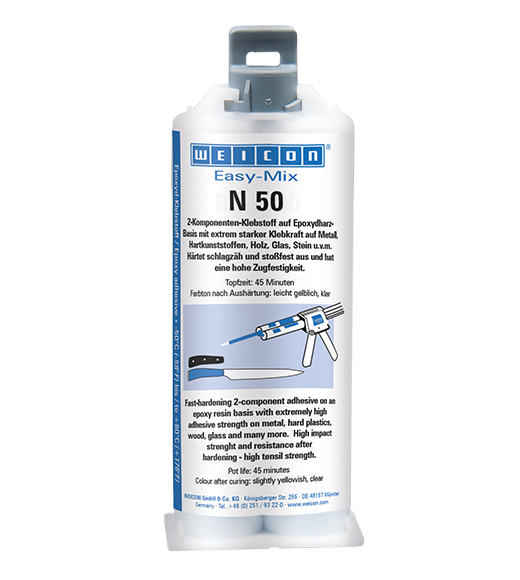 Эпоксидный клей Weicon Easy-Mix N 50 на основе эпоксидной смолы предназначен для производственных процессов со смещёнными по времени монтажными и позиционными работами.