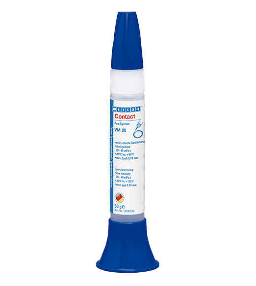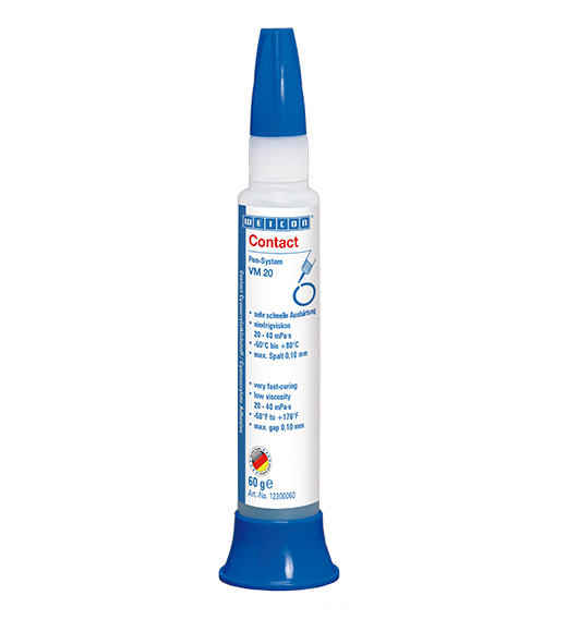 Цианоакрилатный клей Weicon VM 20 на основе метилата предназначен для склеивания всех видов металла в конвейерном производстве. Он обладает низкой вязкостью и очень быстрой полимеризацией.