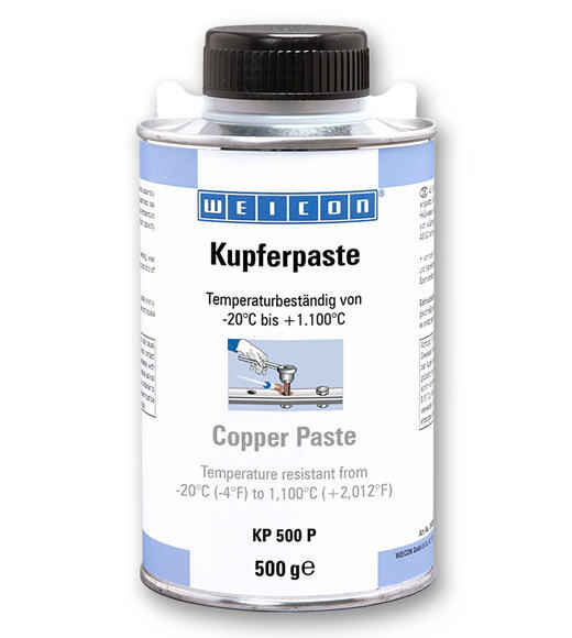 Медная паста Weicon KP 500 на основе минерального масла образует смазывающую и разделительную плёнку на монтировочных инструментах, защитных втулках, винтах, болтах, поршнях, резьбовых, штыковых и байонетных соединениях. Она не содержит никель, серу и свинец. Данное средство обеспечивает низкие показатели трения и высокие разделительные качества.