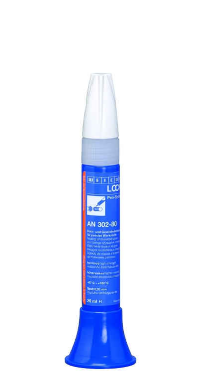 Анаэробный клей-герметик Weicon AN 302-80 разработан для герметизации труб и фланцев для пассивных материалов: высоколегированной стали, алюминия, никеля, цинка, золота, пластика, керамики, оксидной и анодной пленки. Средство обладает относительно высокой вязкостью и прочностью, может демонтироваться только предварительном нагревании до +350 °C.