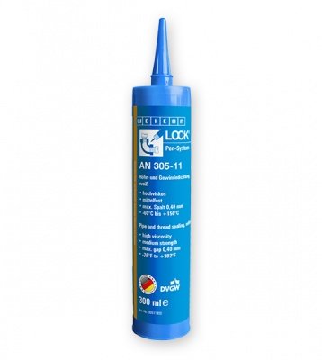 Анаэробный клей-герметик Weicon AN 305-11 используется для уплотнения резьбовых соединений. Он заполняет зазоры между резьбовыми деталями и тем самым позволяет избежать течи. Средство сертифицировано DVGW и KTW и допущено для использования в газообразной и жидкой средах.