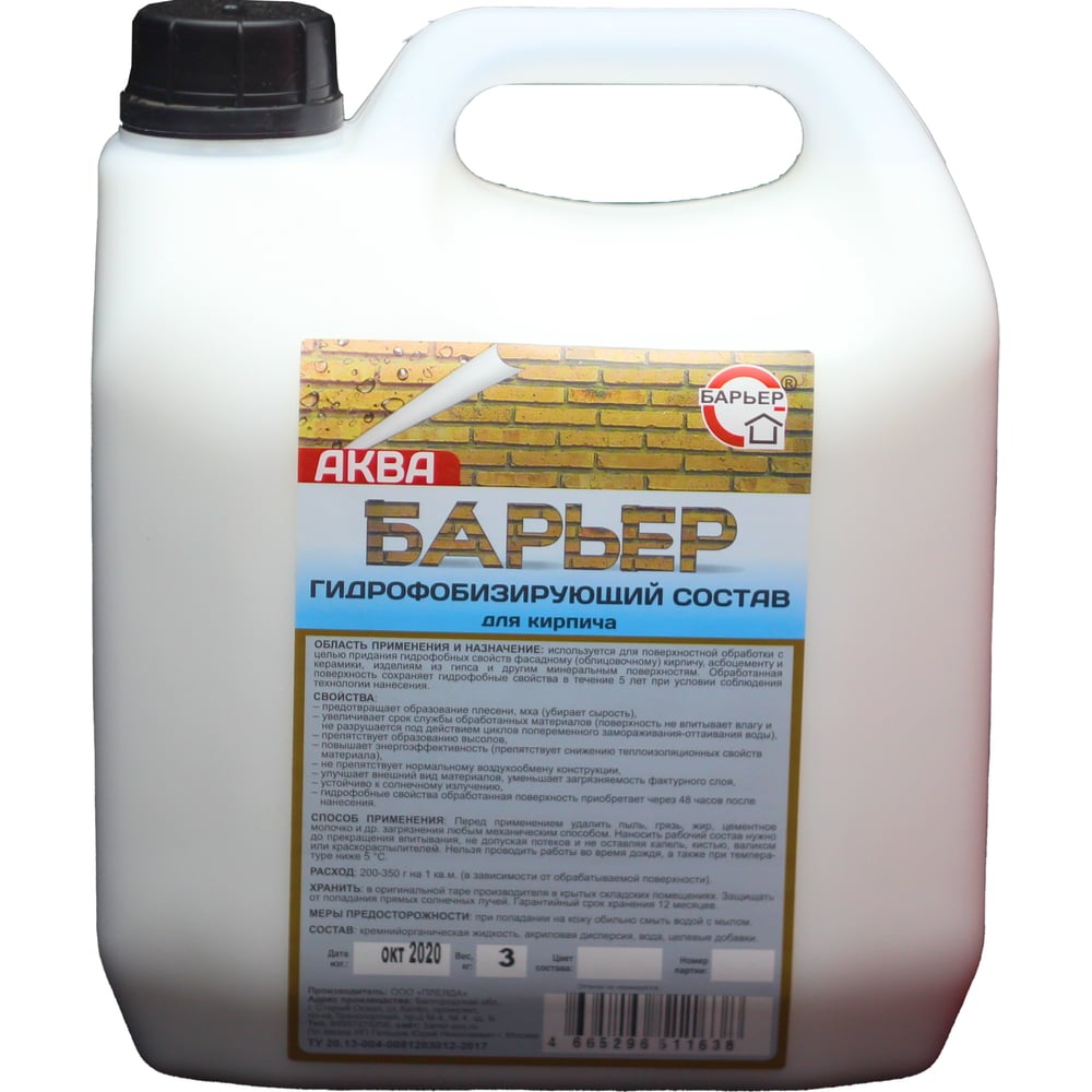 Гидрофобизирующий состав для кирпича Барьер / АКВА / 4665296511621