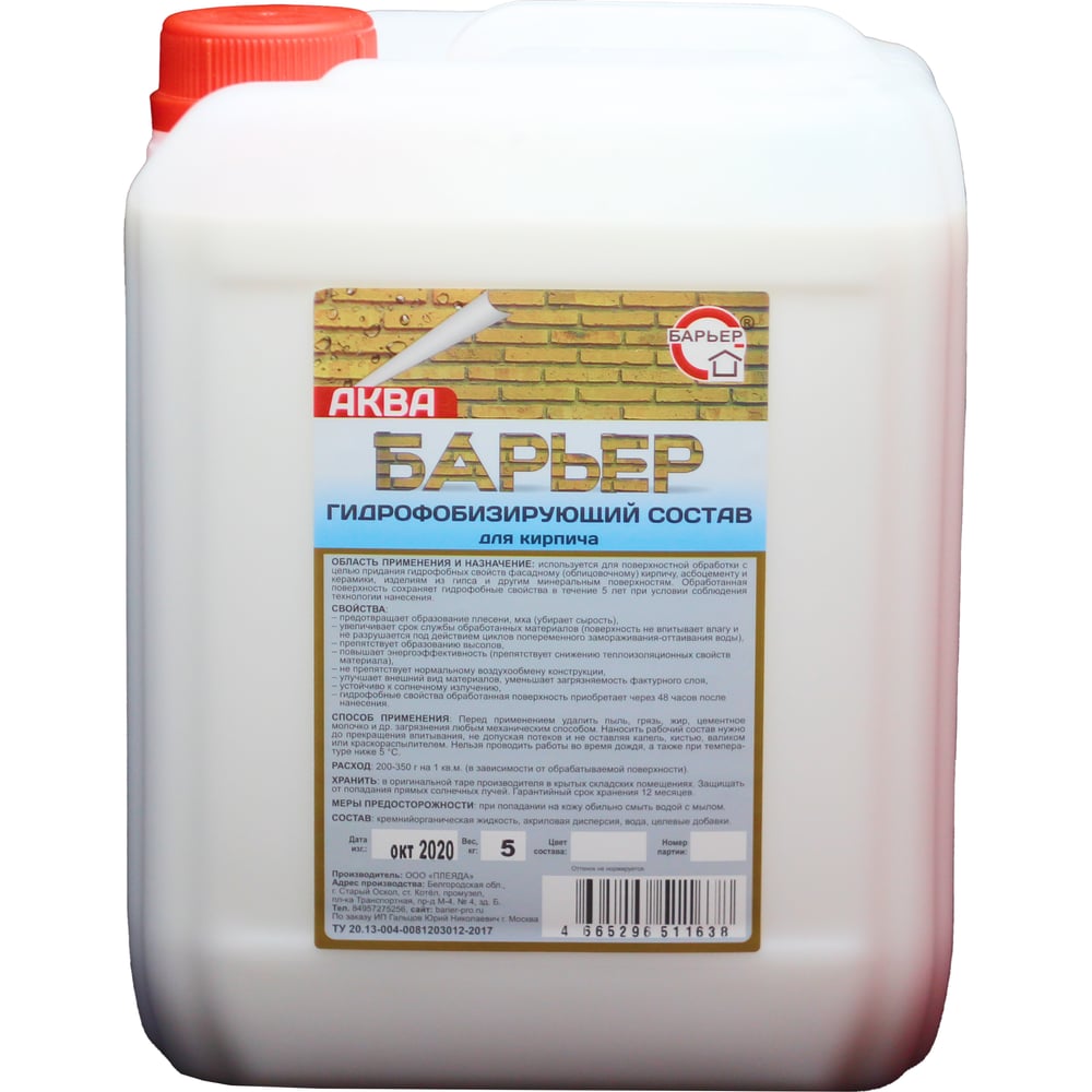Гидрофобизирующий состав для кирпича БАРЬЕР / АКВА / 4665296513731