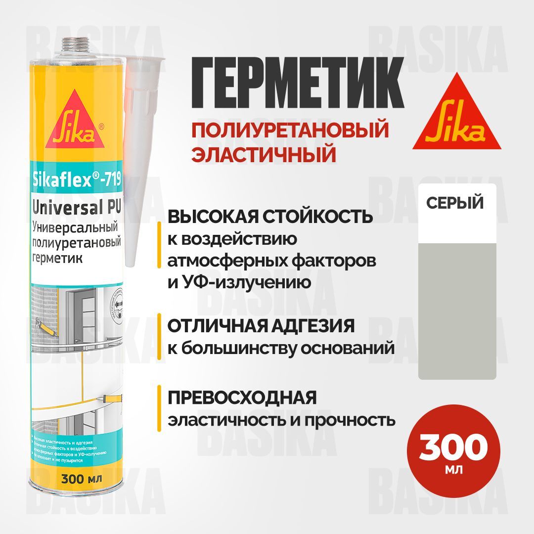 Полиуретановый эластичный универсальный герметик Sikaflex-719 Universal PU Construction / Sikaflex 719-300 Серый (754169) / Sikaflex 719-300 Серый 754169